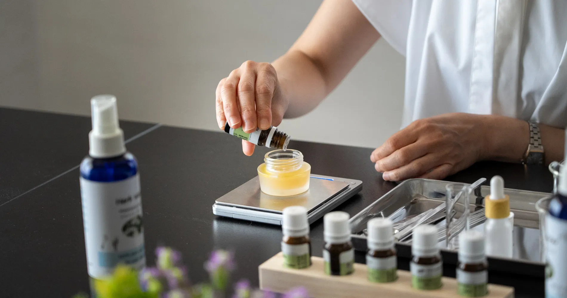 アロマの香りと100%植物由来の手作り化粧品で、心地よいひとときをお届けします。